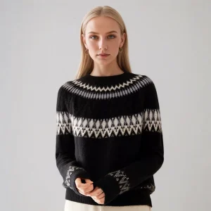 Half Turtleneck Vintage Jacquard Black Cashmere Sweater