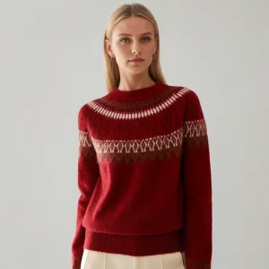 Half Turtleneck Vintage Jacquard Red Cashmere Sweater