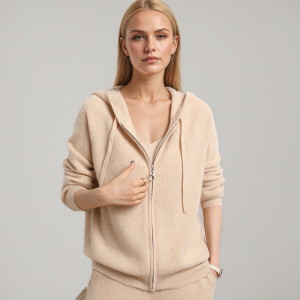 Seed Stitch Hoodie Women’s Cashmere Zip Up Sweater