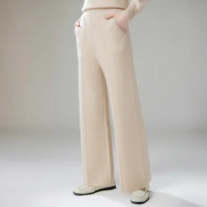Men’s Cashmere Straight Pants with Elastic Waist and Drawstring