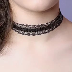 Choker Made in France noir en dentelle et ruban imprimé La Reine les aime rouges