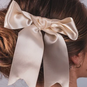Noeud pour cheveux simple à pans en ruban de satin ivoire Chou à la Crème
