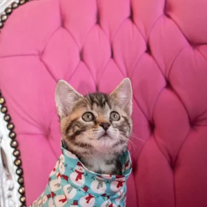 Manteau pour chat nu bleu turquoise imprimé Je voudrais un Bonhomme de Neige