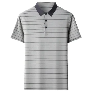 Non-ironing Men’s Striped Silk Shirt With Short Sleeves