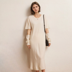 Women’s Cashmere Half-Sleeve Dress with Elbow-Guard Gloves