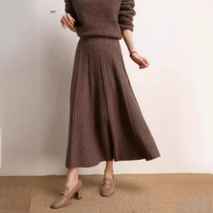 Women’s Cashmere Knit A-Line Pleated Skirt