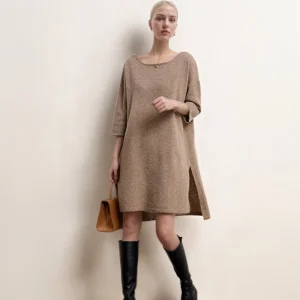 Women’s Cashmere Knit Dress Loose Fit with Side Slit