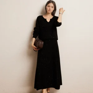 Women’s Cashmere Sequin A-Line Skirt with Elastic Waist