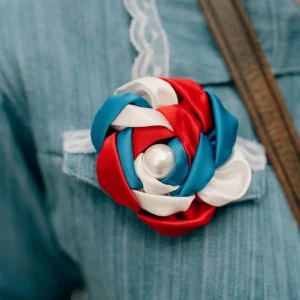 Fleur tricolore pour cheveux Made in France en satin bleu blanc et rouge