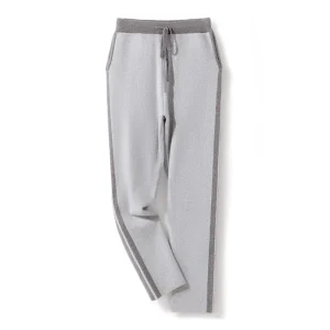 Men’s Thick Cashmere Track Pants with Contrast Stripes and Elastic Waist