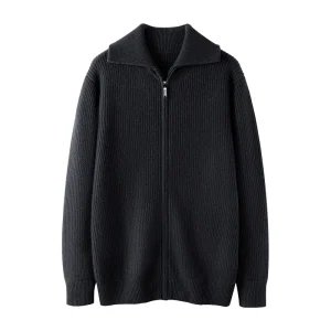 Men’s Thick Vertical Striped Cashmere Zip Cardigan