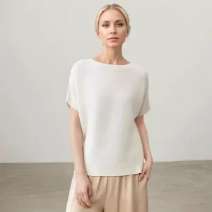 One-Shoulder Textured Knit Batwing Sleeve Silk T-Shirt