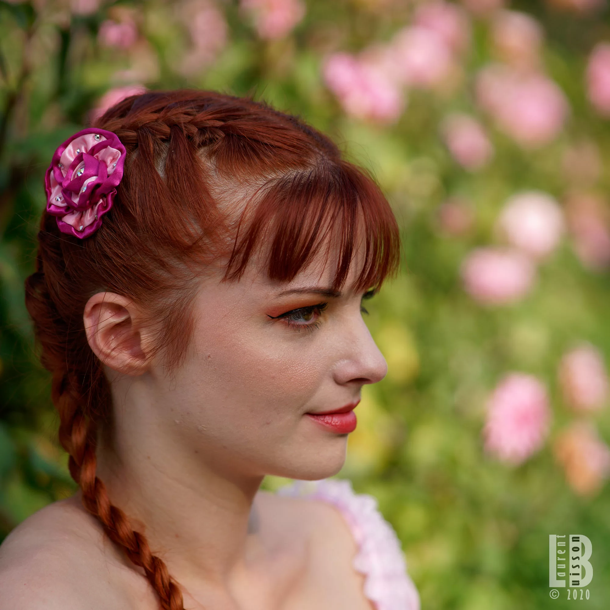 Notre rose Haute Couture sera du plus bel effet dans de nombreux types de coiffures : tresses, queues de cheval, chignon, couronnes, et même sur cheveux lâchés.