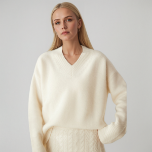 Classic black & white striped women’s cashmere sweater with crew neck, fine knit texture, and luxurious soft touch perfect for everyday elegance.
