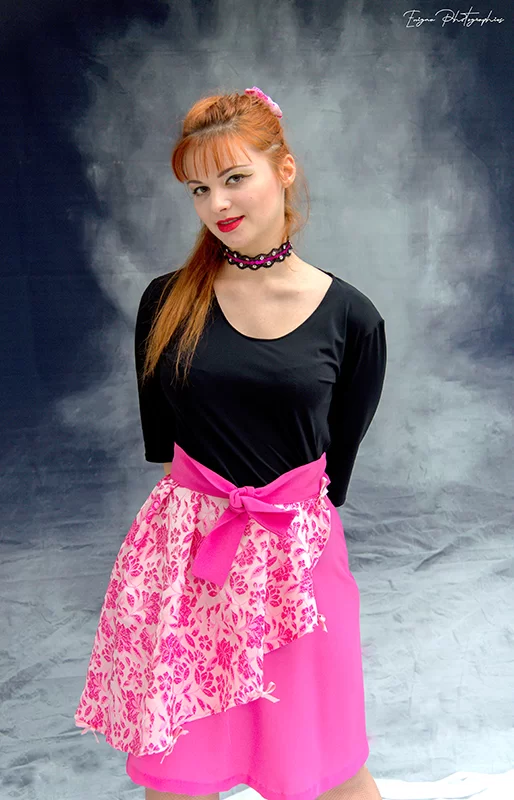 Notre choker Midinette en noir et fuchsia s’assortira à notre large gamme de hauts made in France : par exemple notre haut Danseuse fuchsia.