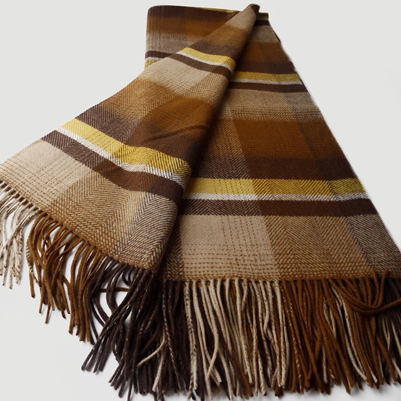 Colorful Checkered Lambswool Blanket with Fringes