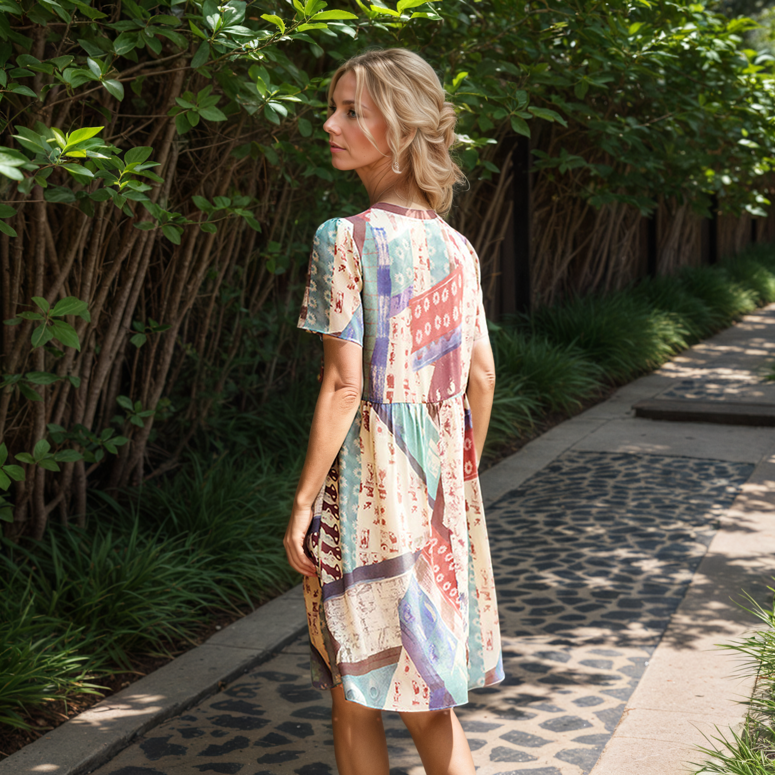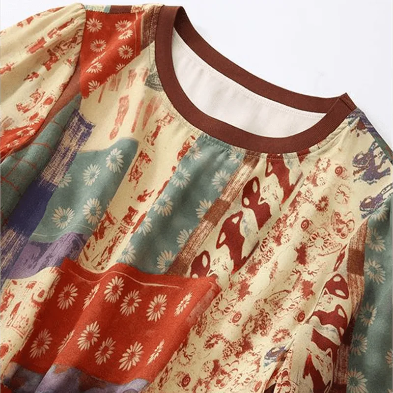 Soyez le premier à laisser votre avis sur “Geometric Pattern Stitching Silk Dress”