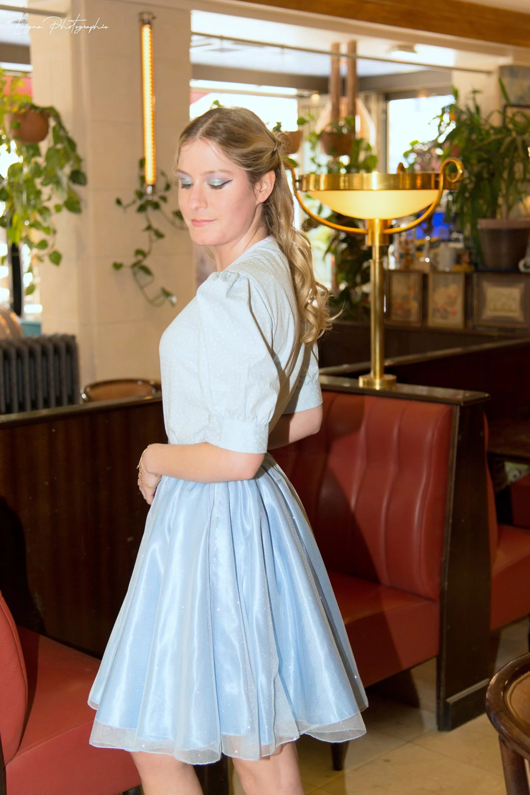 Jupe ample Made in France en tulle pailleté bleu ciel Pin up version Cendrillon