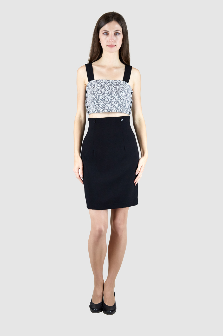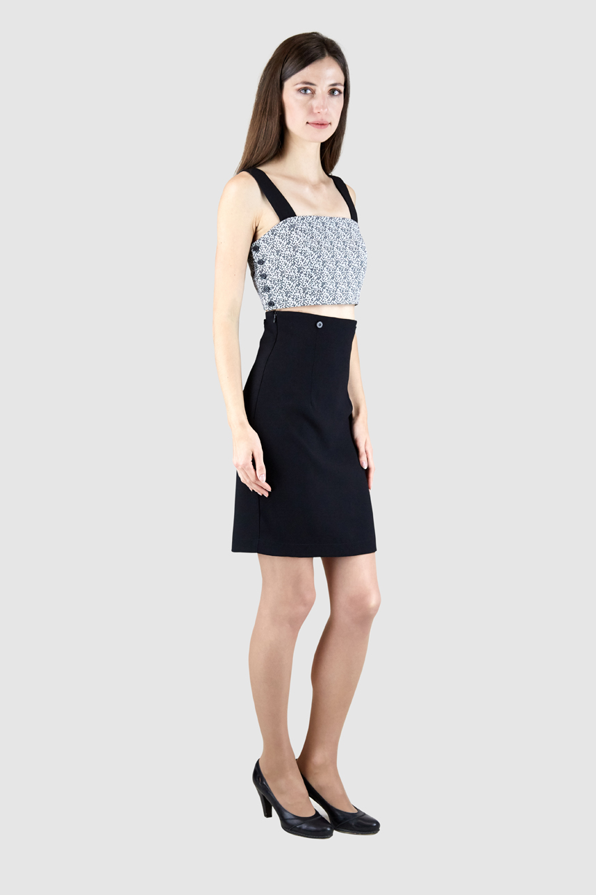 Jupe noir modulable grâce à des pattes d’attaches noires amovibles et des boutons intérieurs.