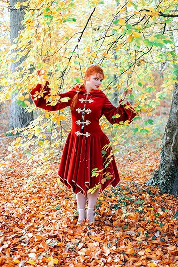 Manteau elfique made in France en velours rouge