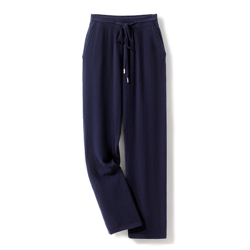 Men’s Cashmere Straight Pants with Elastic Waist and Drawstring