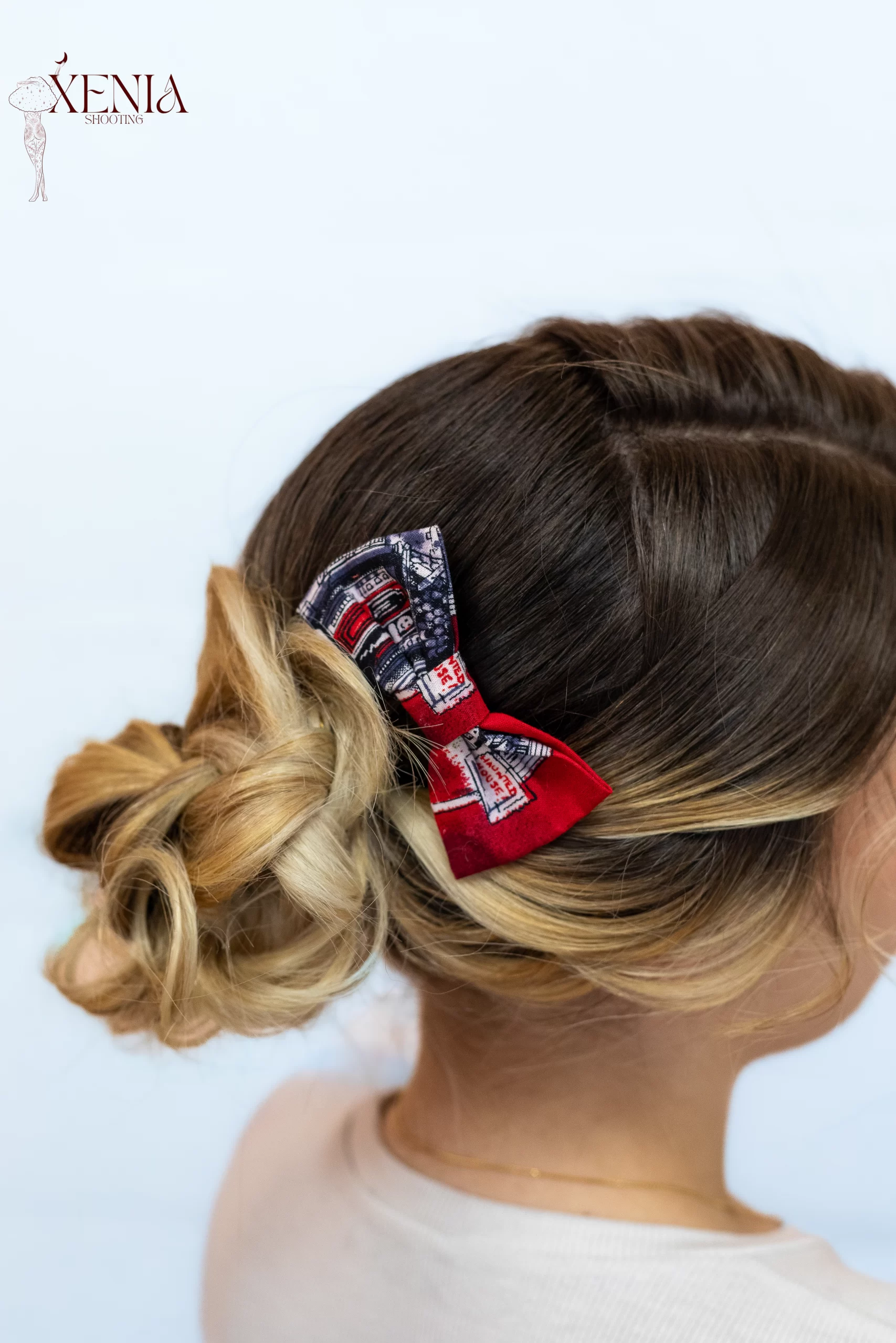 Adorable accessoire cheveux noeud fait main Made in France en coton imprimé maisons hantées, monté sur peigne clip, sur barrette, ou même sur broche si vous souhaitez épingler votre noeud sur votre veste ou votre manteau.