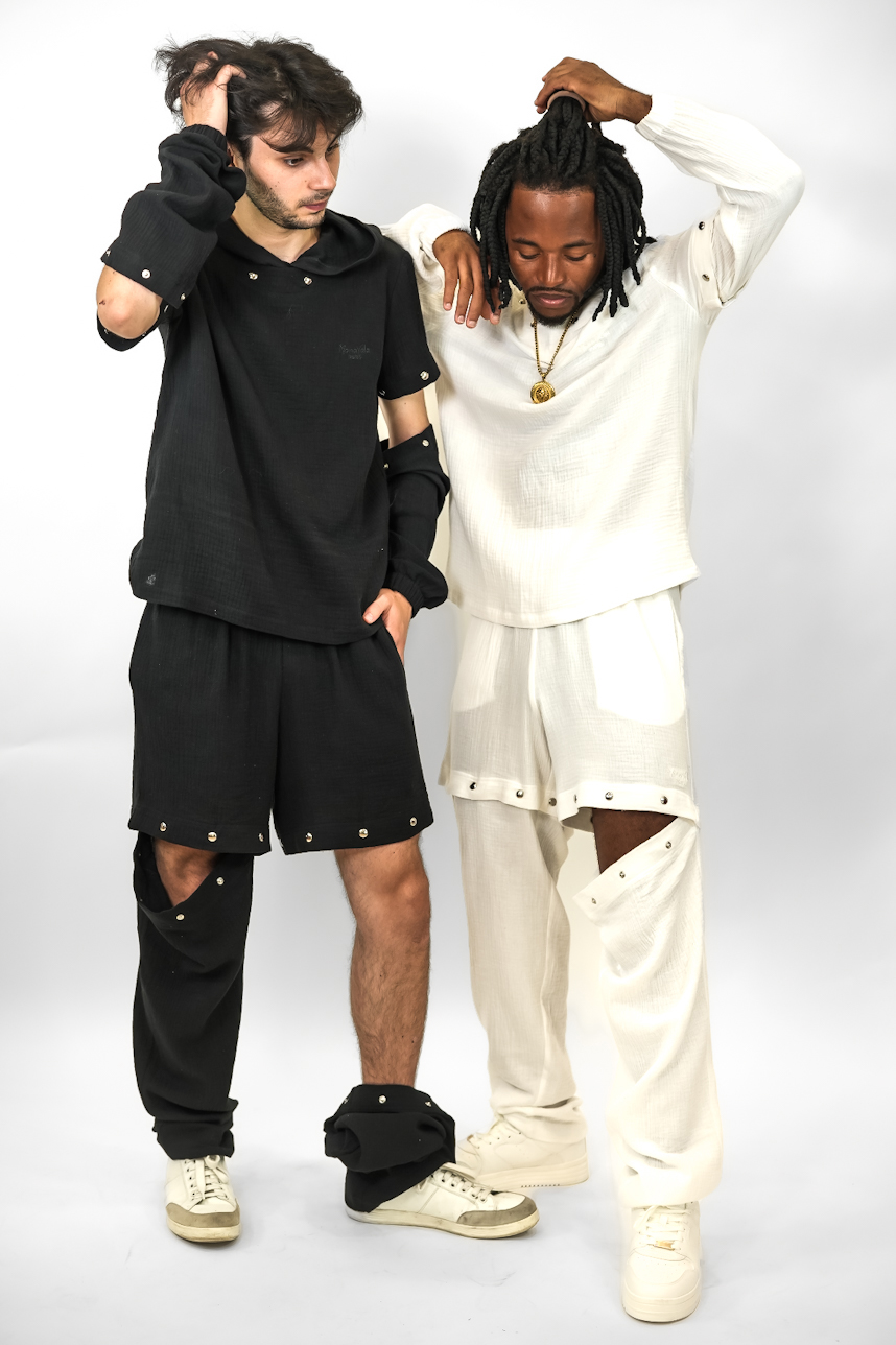 Ce nogender wear confortable, ludique et utile s’adapte à vos besoin tout au long de la journée, il vous protège du froid le matin et il se transforme short pour vous rafraichir au soleil à midi.