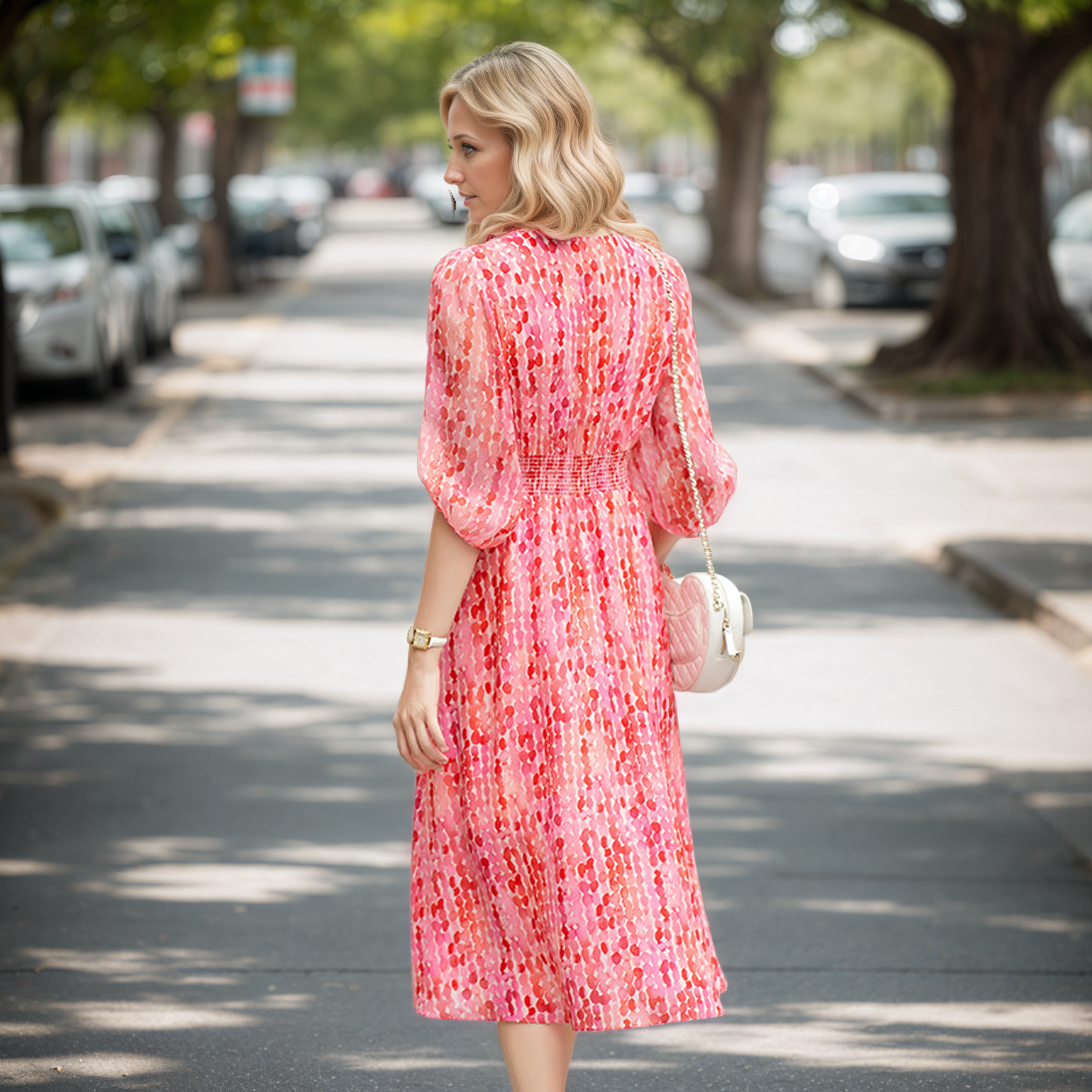 The Silk dress features a classic French-inspired V-neckline that gracefully elongates the neck, accentuating your delicate collarbones and adding a touch of flirtatious charm. This flattering design element beautifully showcases the feminine silhouette, enhancing your natural grace and poise.