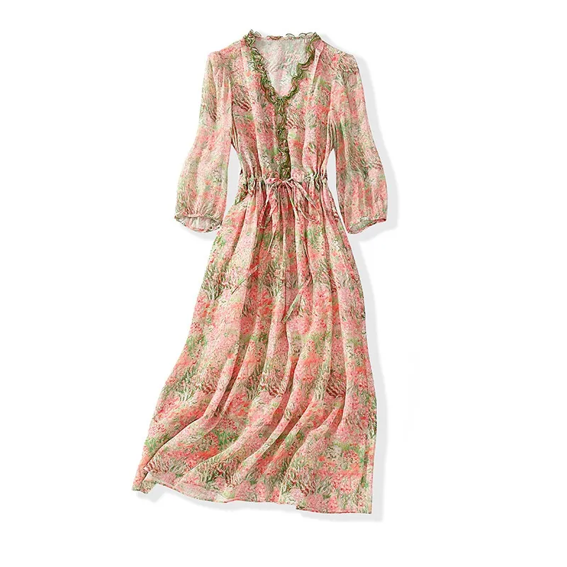 This silk dress is not only stylish but also boasts an elegant silhouette that beautifully accentuates a figure. The high-waist design with a drawstring allows for adjustable tightness, ensuring a perfect fit for various body types. What’s more, it cleverly divides the body proportions, making you look taller and slimmer instantly. Its adds a touch of sophistication, making it suitable for both casual outings and more formal occasions.