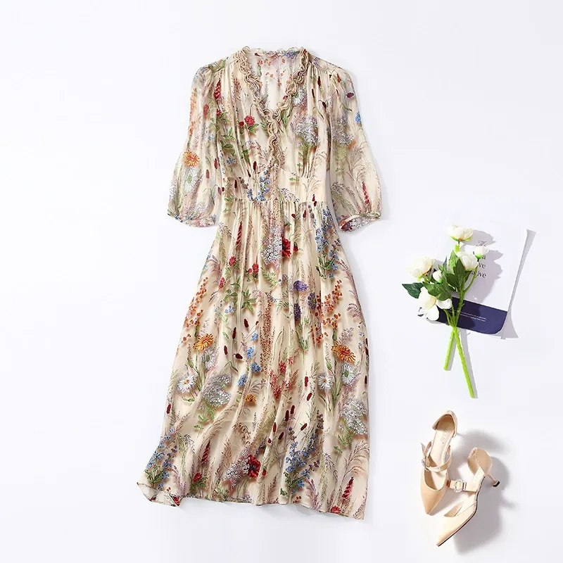 This elegant silk dress is designed to highlight your feminine charm with its slimming waistline that creates a flattering curve. The skirt flows naturally and sways gracefully with every move, adding a touch of romance and liveliness to your look.