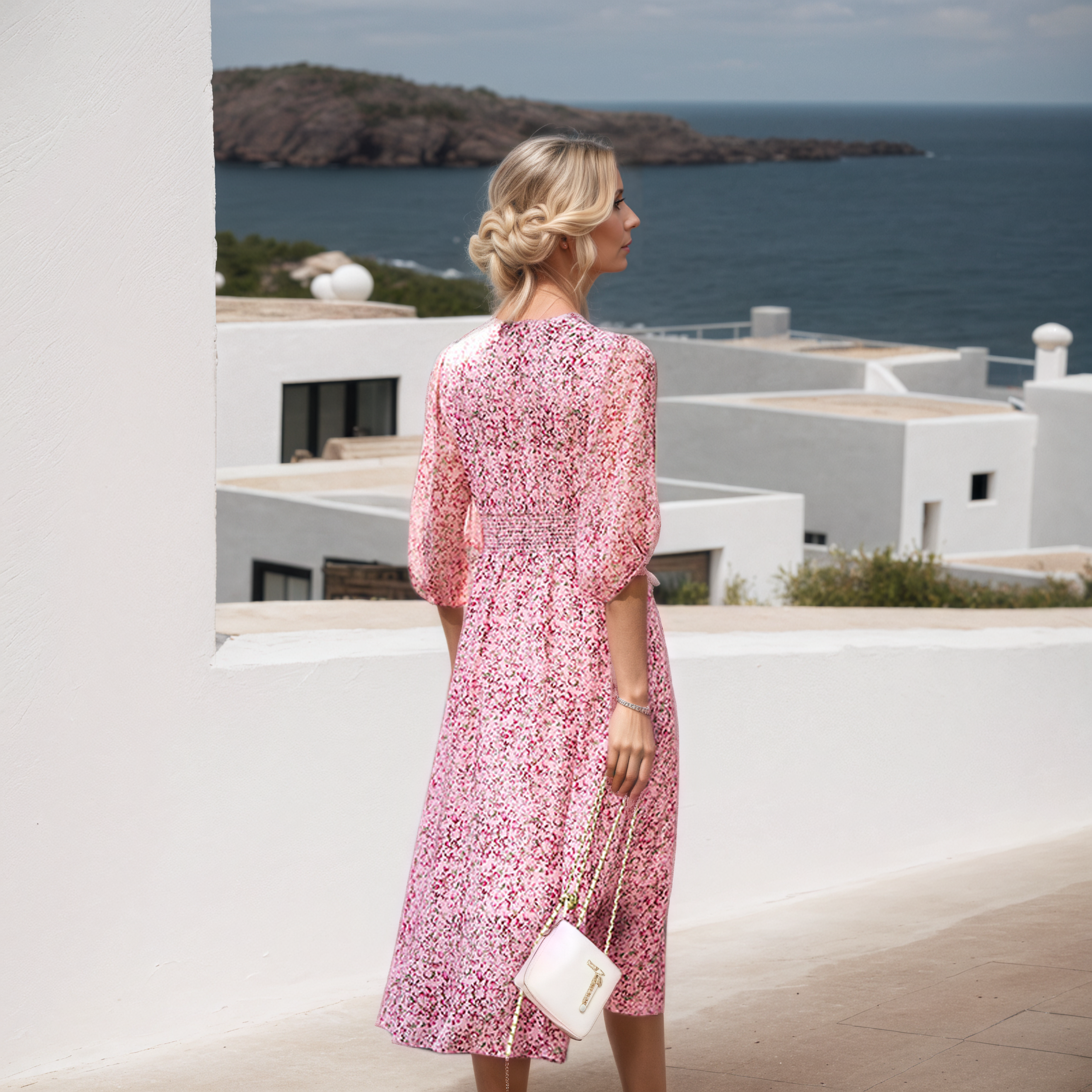 Elevate your style with this exquisite silk dress, where a masterful play of light and shadow, warm and cool hues, breathes life into the patterns. Through meticulous contrast of color depths and temperatures, each design gains unparalleled dimension and a three-dimensional allure, transforming the wearer into a moving canvas of art that captivates every eye in the room. As you walk, the dress sways, unveiling a dynamic display that’s both mesmerizing and elegant.