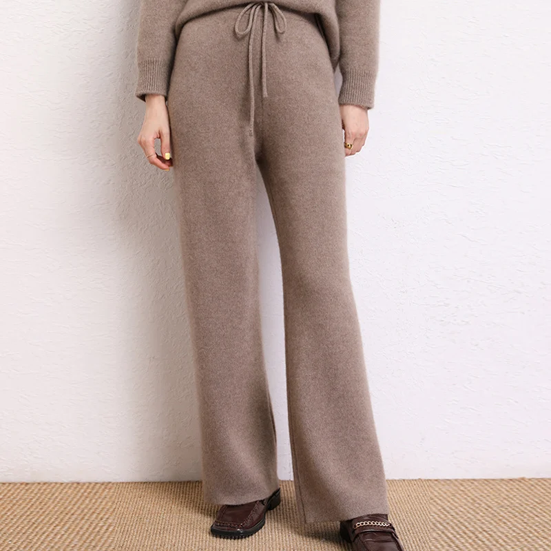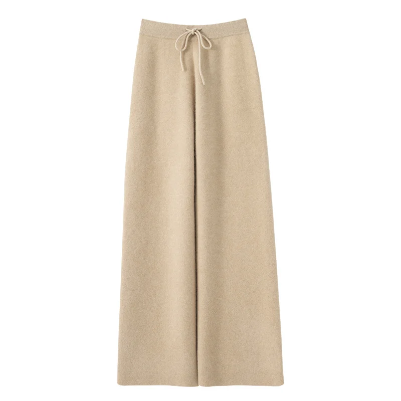 Wrap in luxury with our Solid Cashmere Wide-Leg High-Waist Knit Pants. Crafted from premium cashmere, the high waist flatters while the wide legs offer airy comfort.Timeless solid hues elevate outfits, blending warmth and elegance seamlessly.