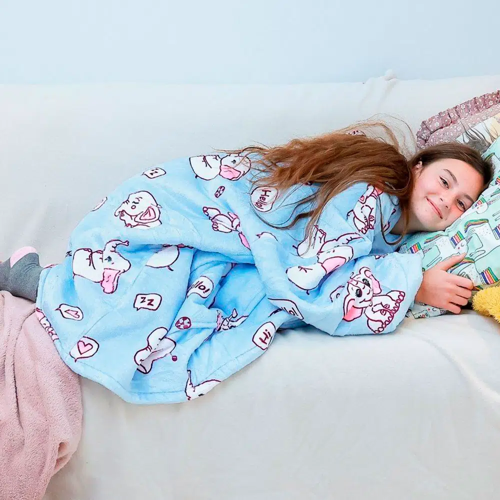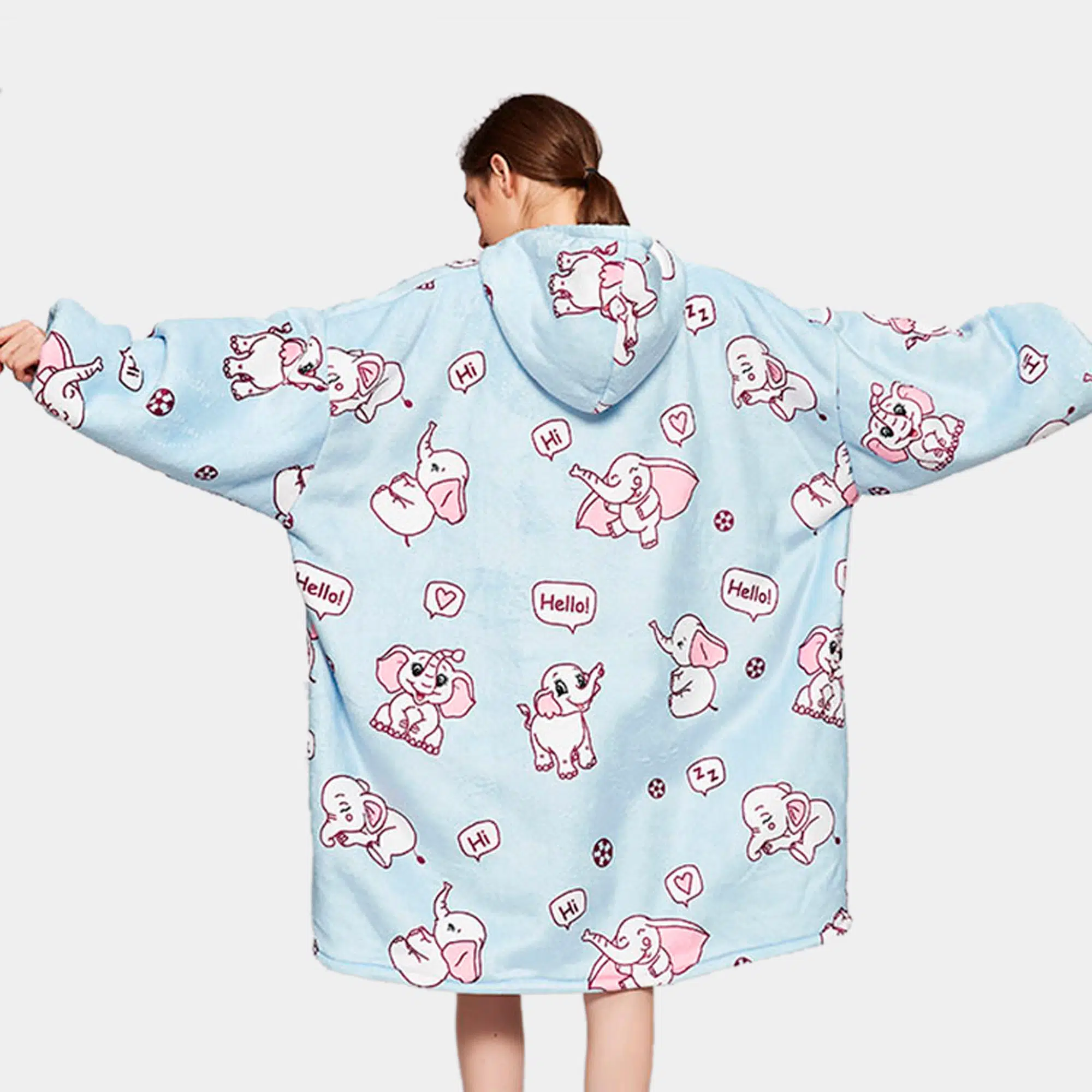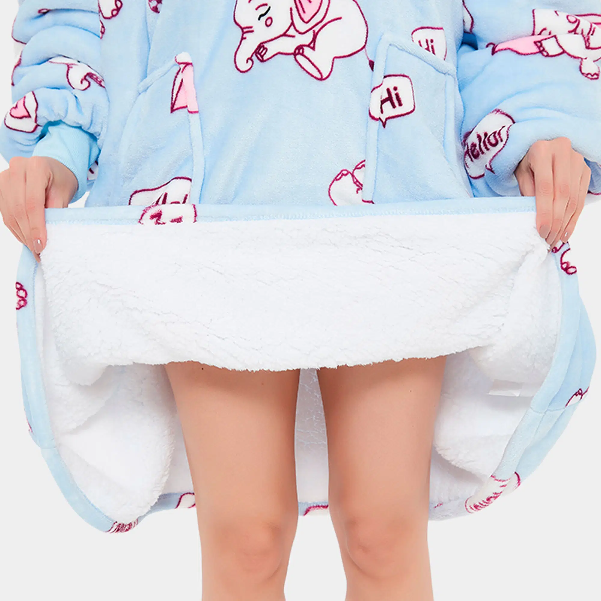 Le sweat plaid eléphant est idéal pour vos journées et soirées hivernales. Grâce à un mixe parfait de matières, ce pull couverture vous procurera un maximum de bien-être. Fabriqué avec de la polaire de flanelle de l’extérieur, et de la polaire sherpa de l’intérieur, ce sweat plaid pour femme vous enveloppera d’une chaleur constante très agréable. De plus, ce plaid sweat est graphiquement très joli, et arbore de petits éléphants roses sur un joli fond bleu.