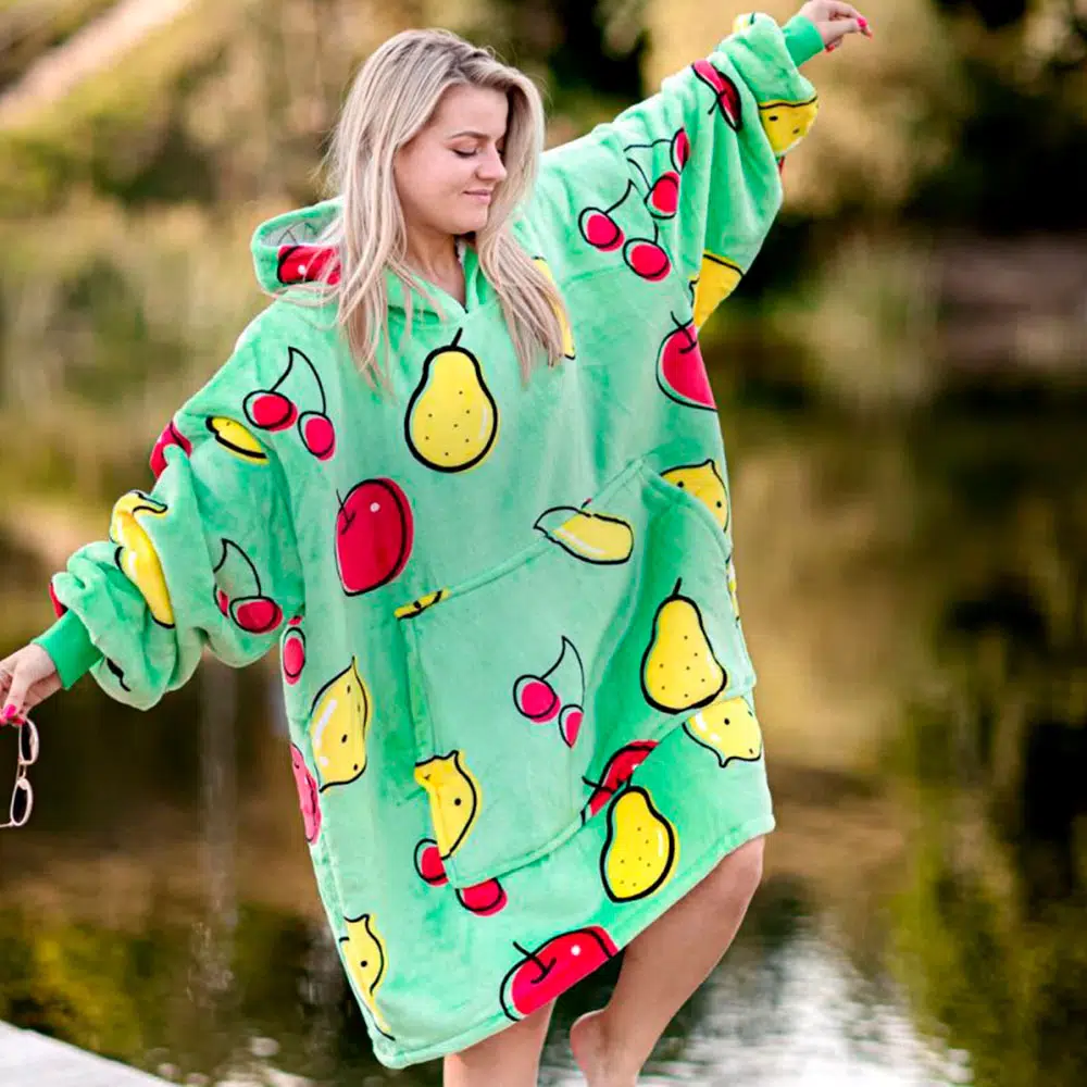 Ce sweat plaid fruit est de taille surdimensionnée, ce qui vous donnera une véritable sensation de bien-être et de réconfort. De plus, sa taille unique fera le bonheur de toutes les morphologies. Notons également que ce sweat plaid est doté d’éléments pratiques : une capuche à doublure molletonnée, des poignets extensibles et une superbe poche géante. Parfait pour profiter d’un moment de repos dans un nid de douceur géant 😋