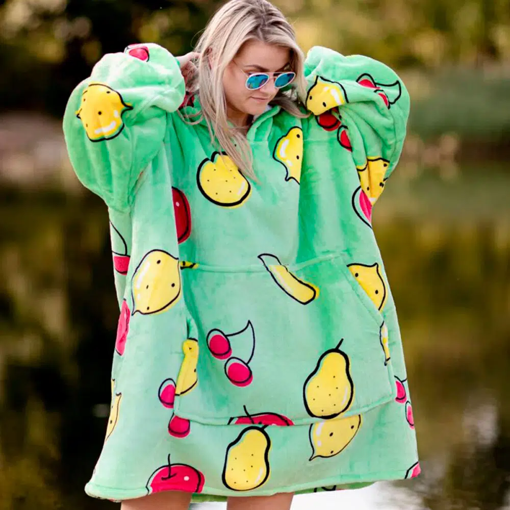 Ce sweat plaid fruits est fabriqué à partir de polaire de flanelle de l’extérieur, une matière des plus chaudes. La partie intérieure quant à elle, est faite de polaire sherpa, connue pour son côté à la fois moutonneux et chaud. D’ailleurs, ce plaid a capuche est facile à entretenir et lavable en machine. Vous l’aurez donc compris, ce pull couverture sera un indispensable pour vos soirées cinéma entre amis, pour une balade ou juste pour chiller devant la télé 😁