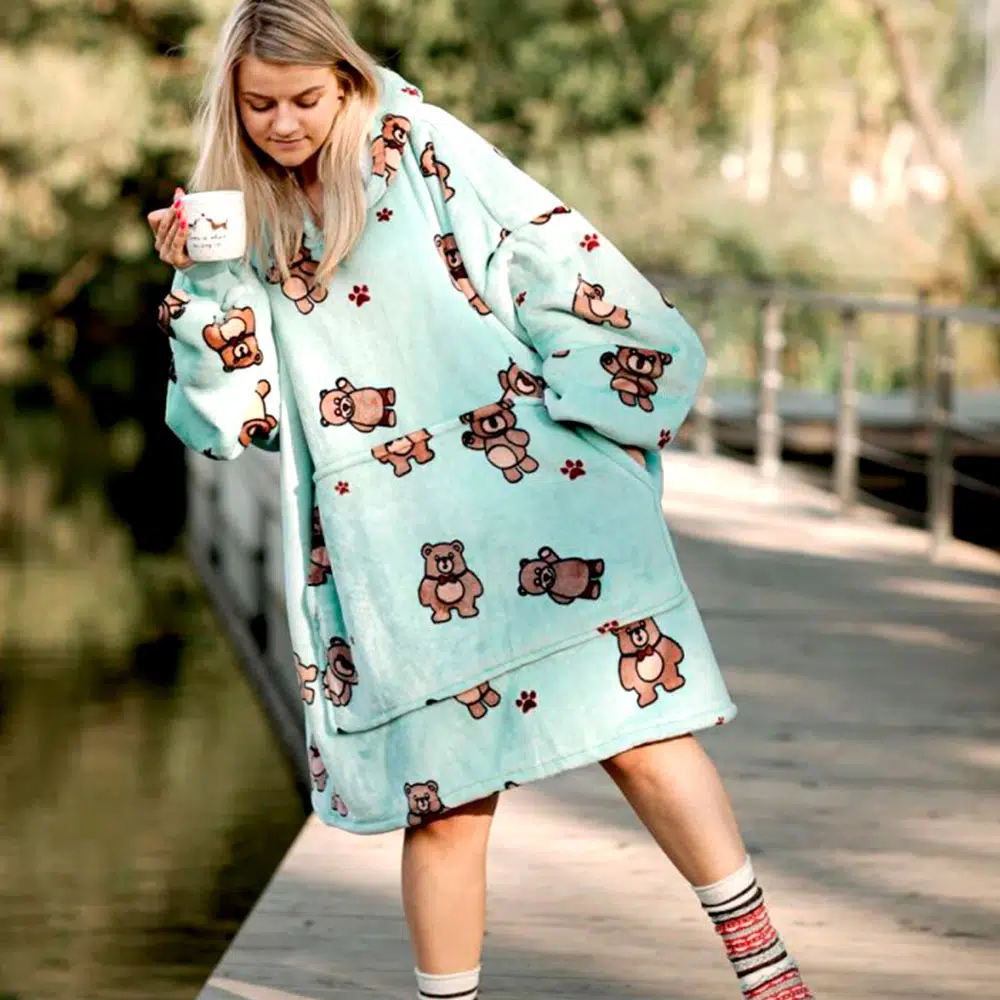 En plus d’être surdimensionné, ce sweat plaid ours est doté d’une grande capuche à doublure extrêmement douce et chaleureuse, et d’une très grande poche super pratique, où vous pouvez mettre le nécessaire pour ne pas bouger de votre nuage de confort.