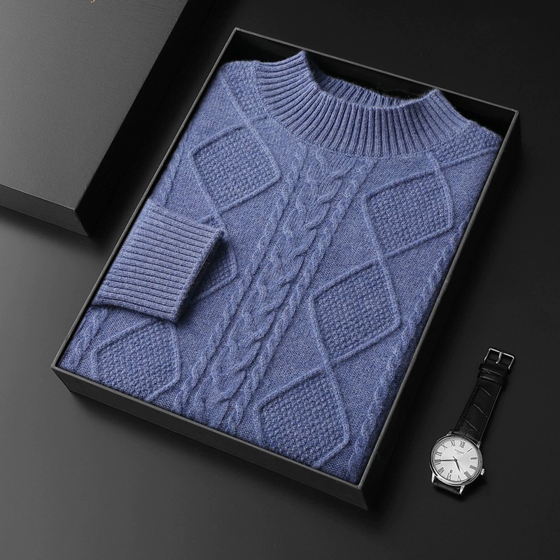 Stay warm in timeless style with our Men’s Thick Cashmere Crewneck Sweater. Expertly crafted with a seven-gauge knit, this pullover features a rich interplay of diamond motifs and classic cable braids on the front, with cable textures extending along the sleeves. A semi-high crew neckline delivers extra warmth without bulk, while ribbed cuffs, collar, and hem ensure elasticity, structure, and a snug fit that resists sagging. Soft, insulating, and durable, this sweater blends refined craftsmanship with effortless winter comfort ideal for both casual and sophisticated layering.