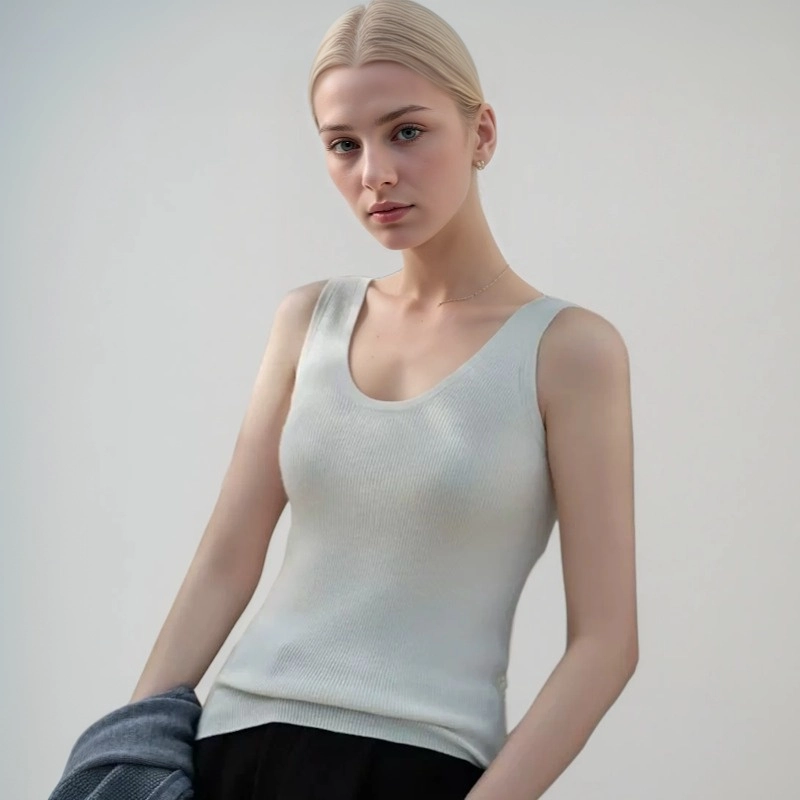This slim cashmere ribbed tank is knit in fine 16-gauge (68s) yarns for a smooth, elastic hand. With a flattering U-neck and lightweight feel at about 120g, it layers cleanly under jackets or wears alone