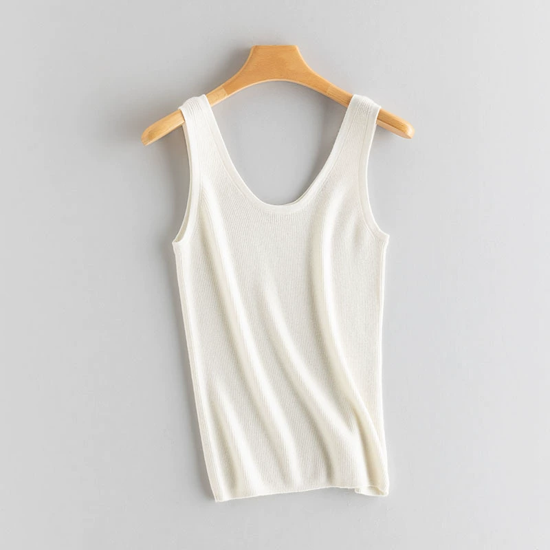 Soft ribbed cashmere tank with U-neck and slim-fit design.