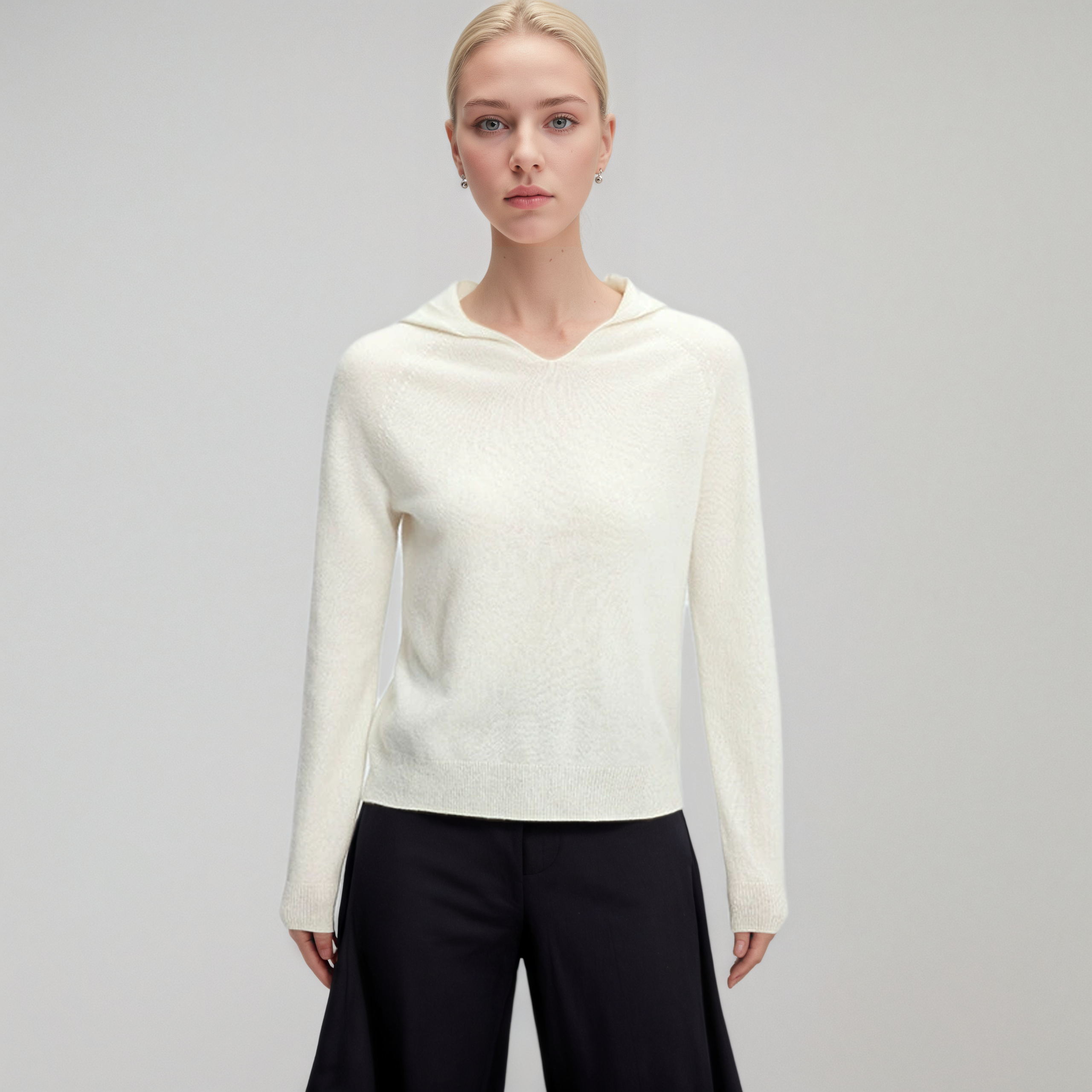 V Neck Cashmere Hoodie Women