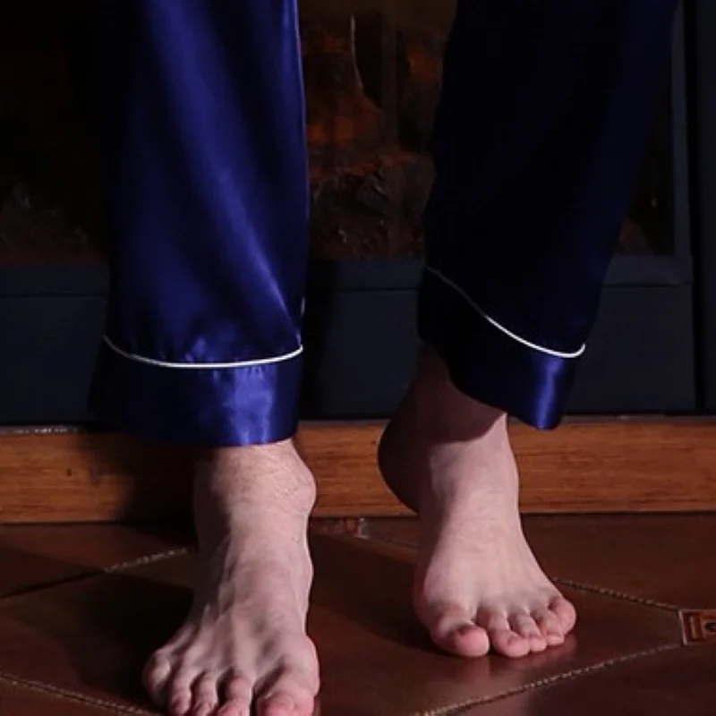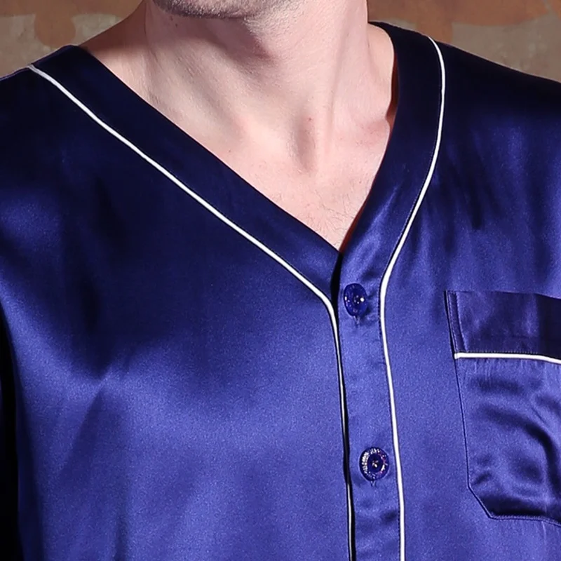 V-Neck Short Sleeves Silk Pajamas for Men