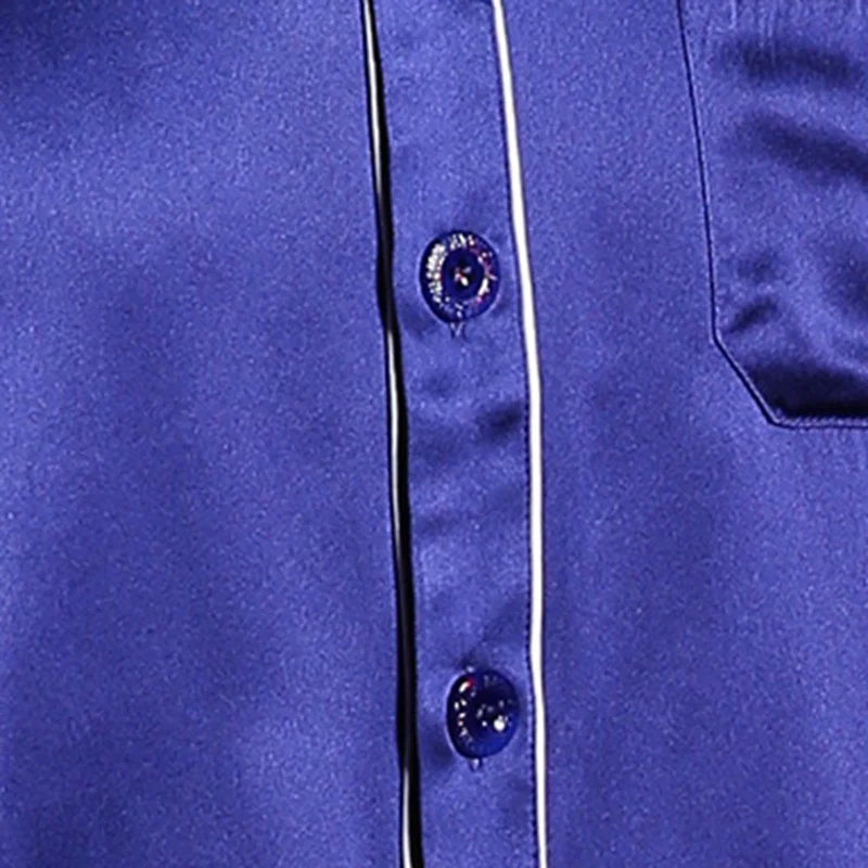 This men’s pajama set is made of real silk. The short-sleeved top features a V-neck and button – front design with a chest pocket. Matching silk pants complete the set. Soft, smooth, and luxurious, it offers ultimate comfort for a good night’s sleep.
