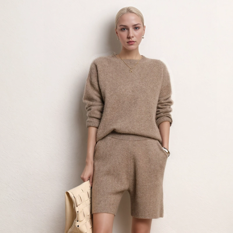 These women’s high-waist shorts are knitted in 12-gauge thick cashmere with a high-stretch construction for all-day comfort. Featuring an elastic waistband and two invisible side slant pockets, the design ensures practicality while the speckled texture adds subtle detail. Perfect for cozy loungewear, layering over tights, or pairing with sweaters for stylish winter outfits.