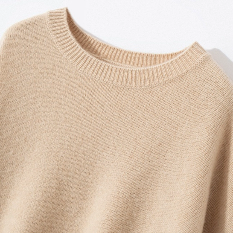 Women’s 7-gauge double-strand cashmere pullover with drop shoulder and long sleeves, lightweight and cozy.