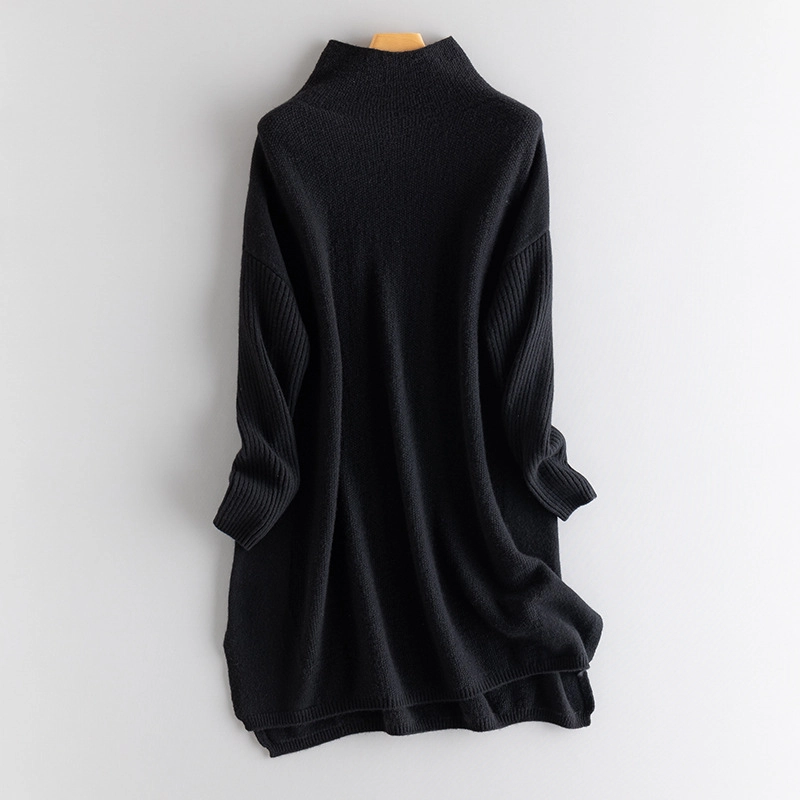 Women’s cashmere turtleneck midi dress with side slits and ribbed sleeves, 476g.