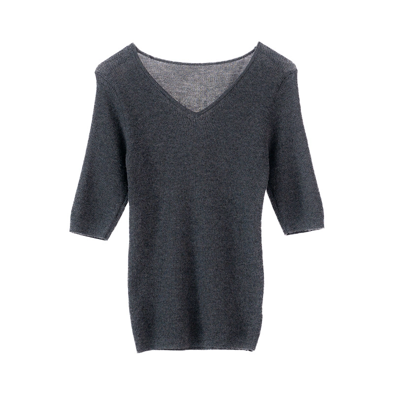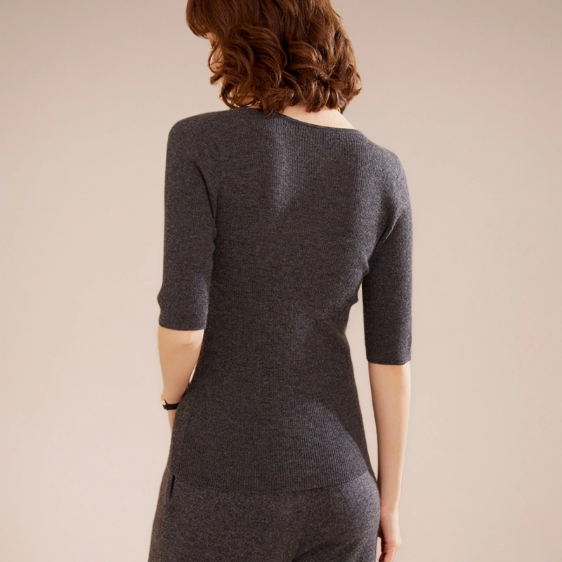 Women’s Cashmere V-Neck Elbow Sleeve Fitted Shirt