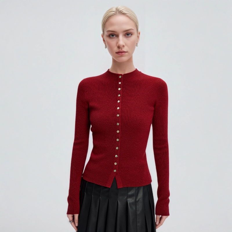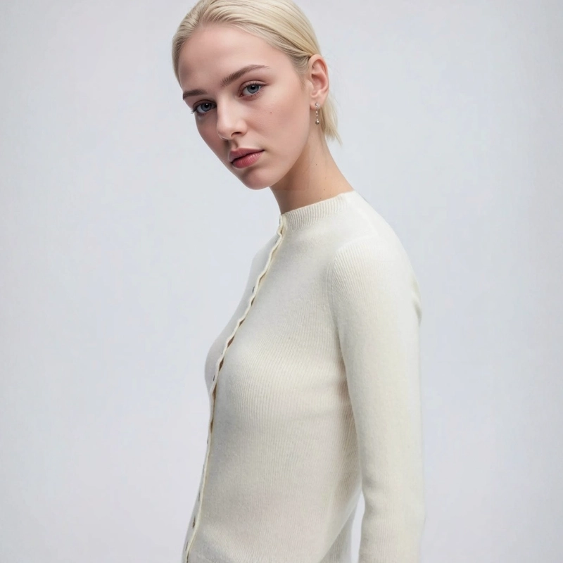 Women’s Crew Neck Button Fitted Cashmere Cardigan