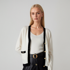Contrast Trim Women’s Cashmere Cardigan