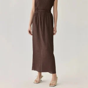 Elastic Waist Pleated Real Silk Midi Skirt with Textured Surface