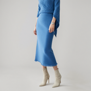 Fringed Hem Knit Midi Cashmere Skirt